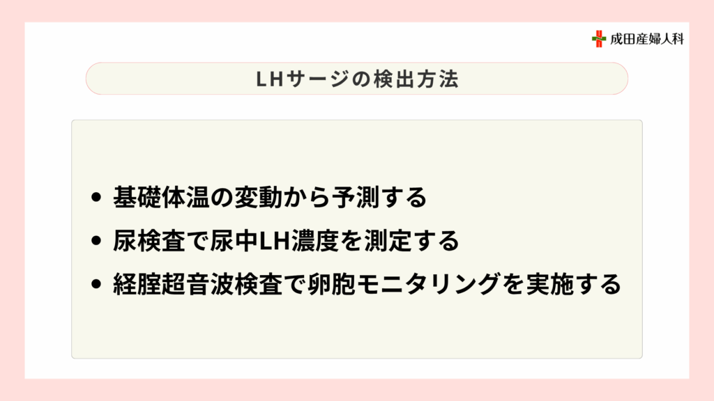 通常、月経周期の中頃(月経開始から2週間目前後)にLHサージが起こり、これを検知することで排卵のタイミングを知ることができます。