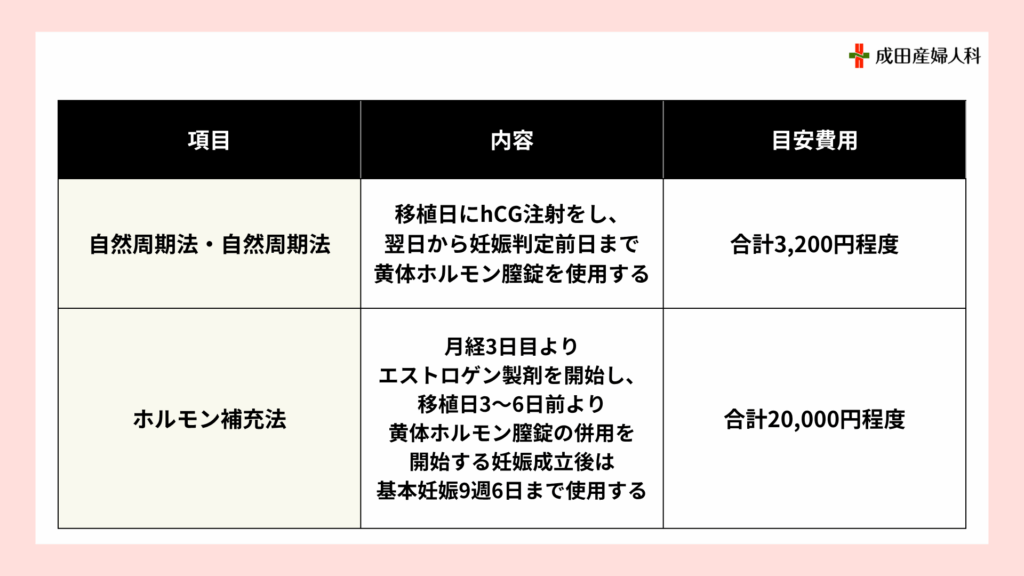4)ホルモン補充周期の凍結融解胚移植では、排卵が起こっていないため卵巣は自分の力で妊娠に必要なホルモンを十分に分泌しておらず、完全な黄体機能不全の状態となります。そのため、胚の着床、妊娠の維持のため卵胞ホルモンと黄体ホルモンの補充は必須となります。最近は、天然型の黄体ホルモン膣坐薬を用いることが多くなりました。